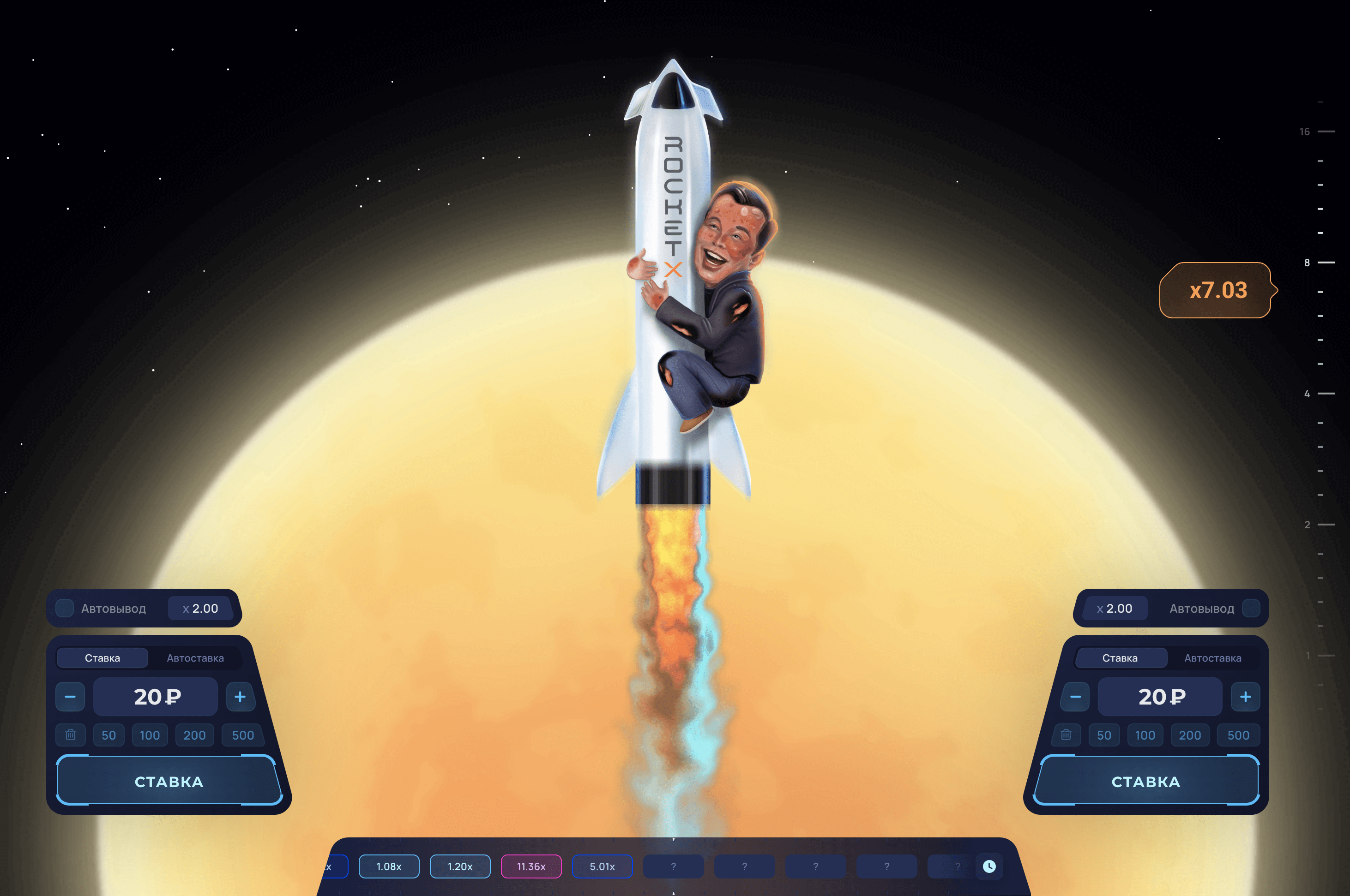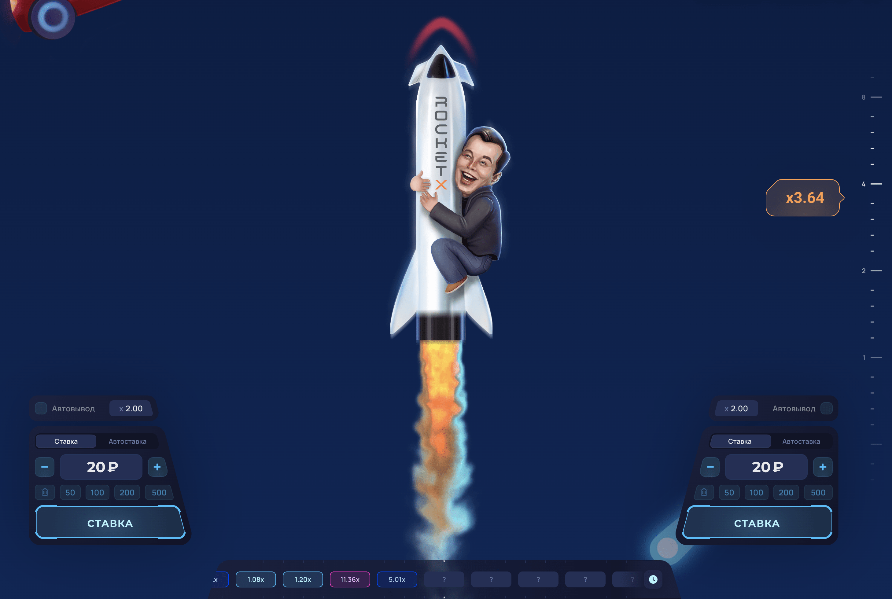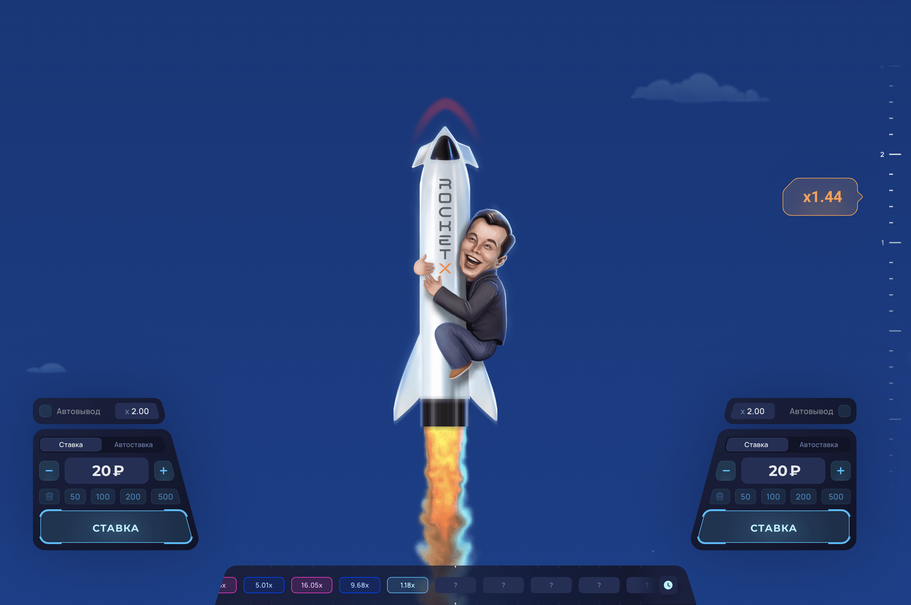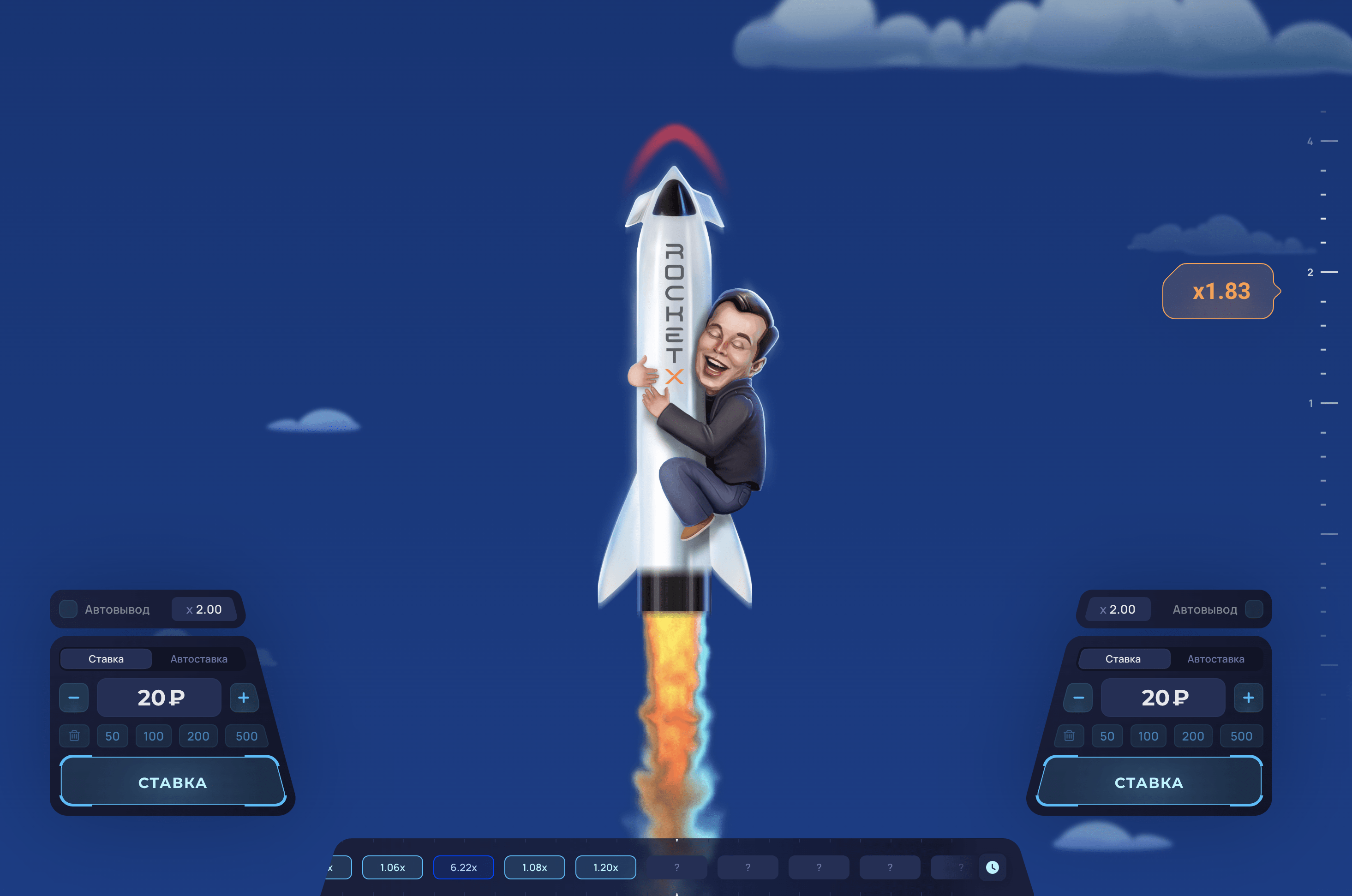 Rocket X – сіздің сәттілік пен стратегиялық ойлауды сынау арқылы нақты ақша ұтып алу мүмкіндігіне ие болатын тәуелді онлайн ойыны. Мұнда сіз ойын ережелері туралы барлық қажетті ақпаратты таба аласыз, стратегия мен тактика бойынша кеңес аласыз, сіз ойынның демо-нұсқасын сынап көре аласыз, тіпті табысқа жету мүмкіндігіңізді арттыру үшін біздің бірегей құрал «Сәуегей» құралын пайдалана аласыз. Бүгін тіркеліңіз және Rocket X-пен қызықты шытырман оқиғаңызды бастаңыз!