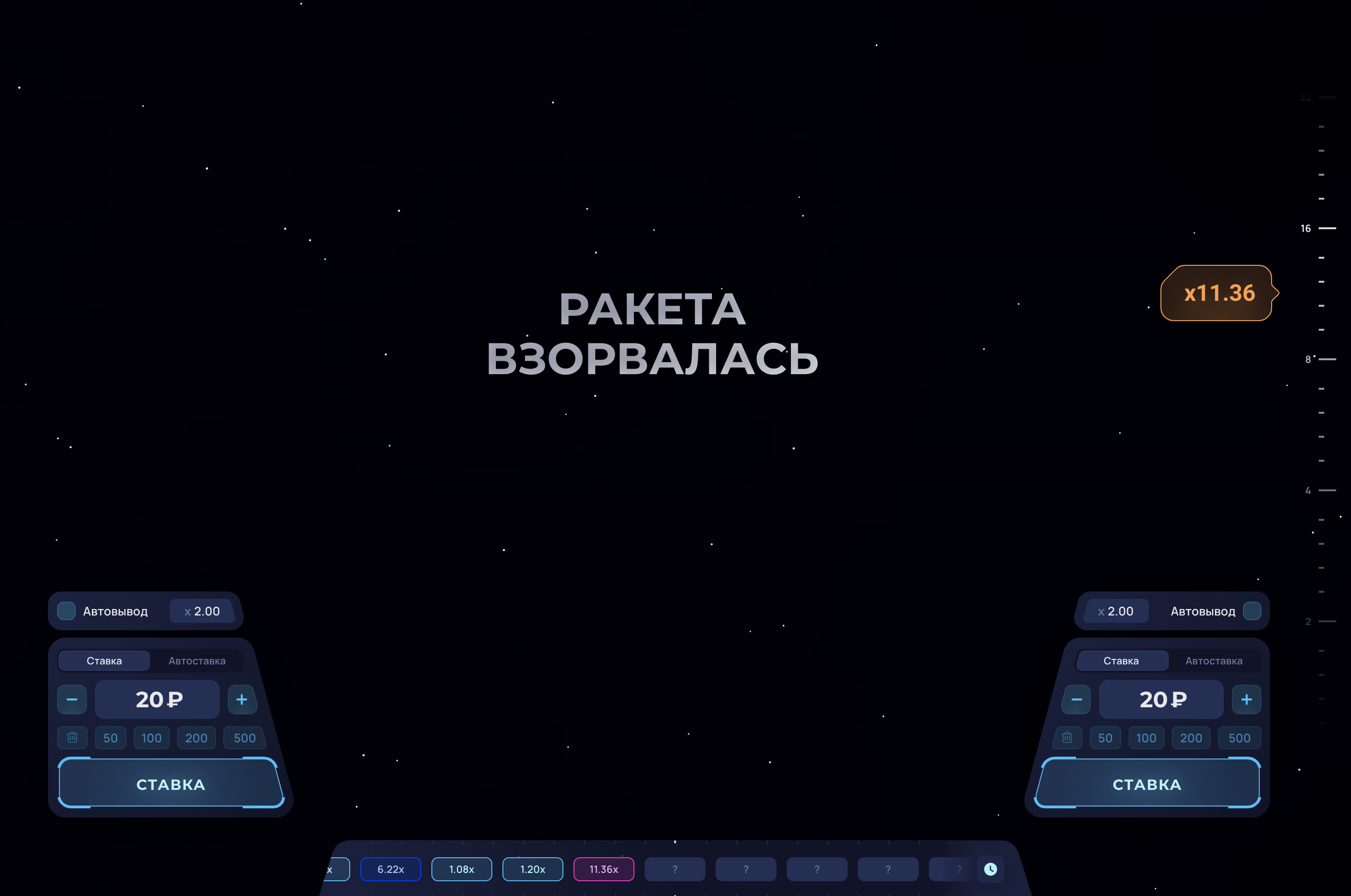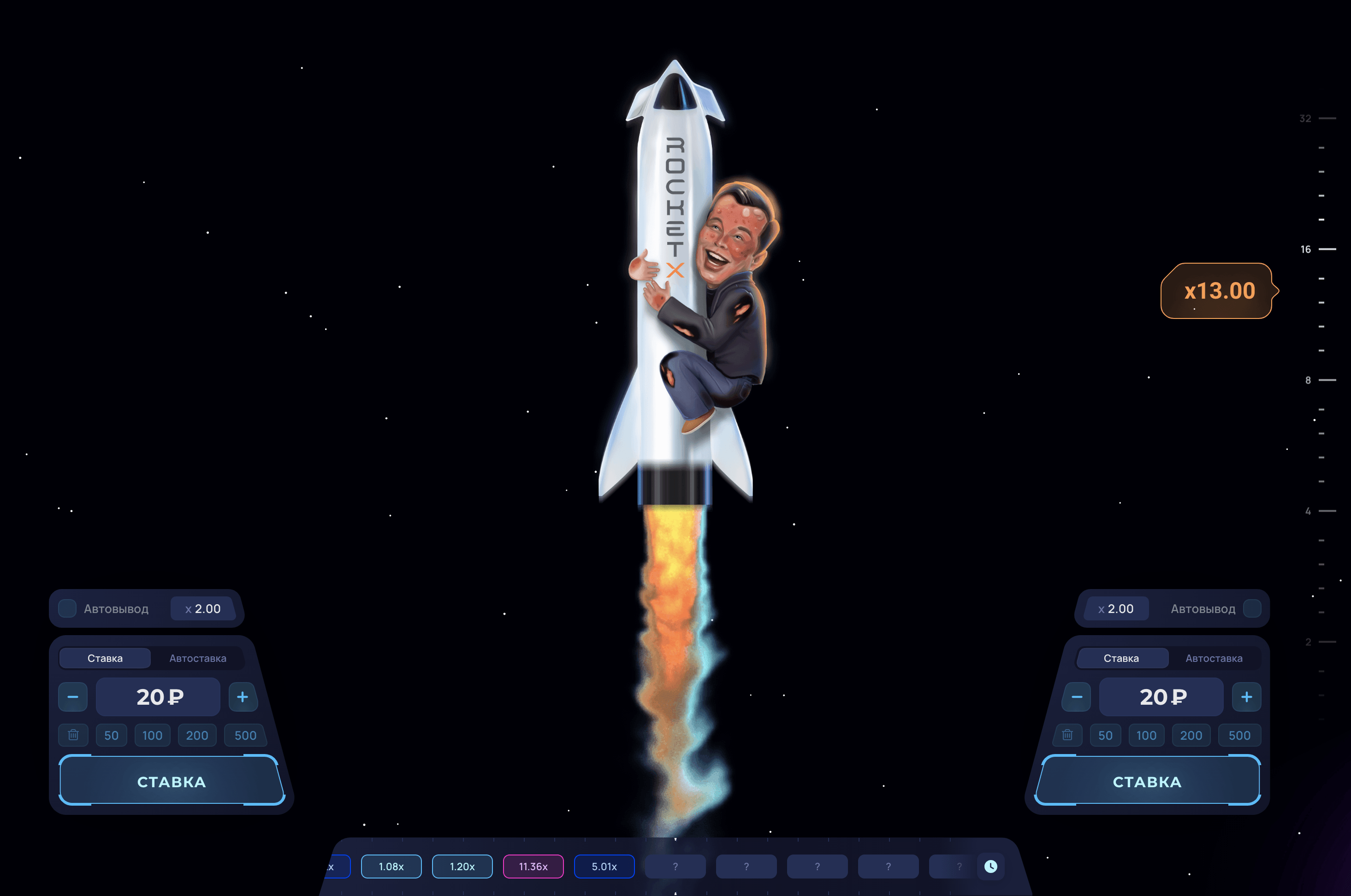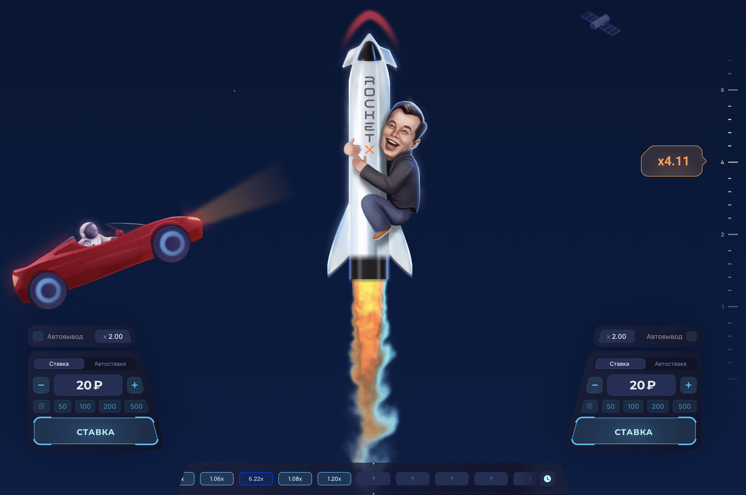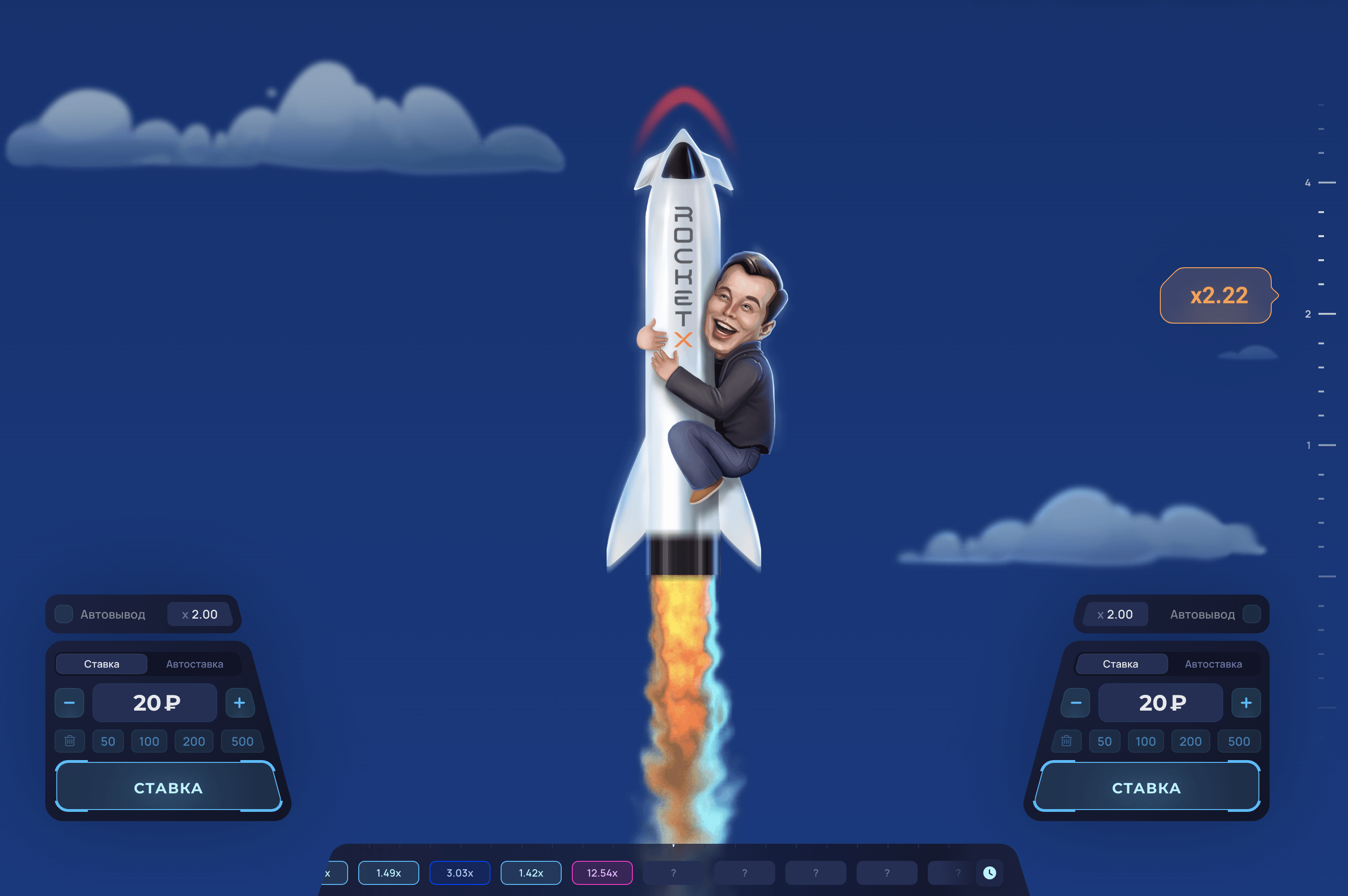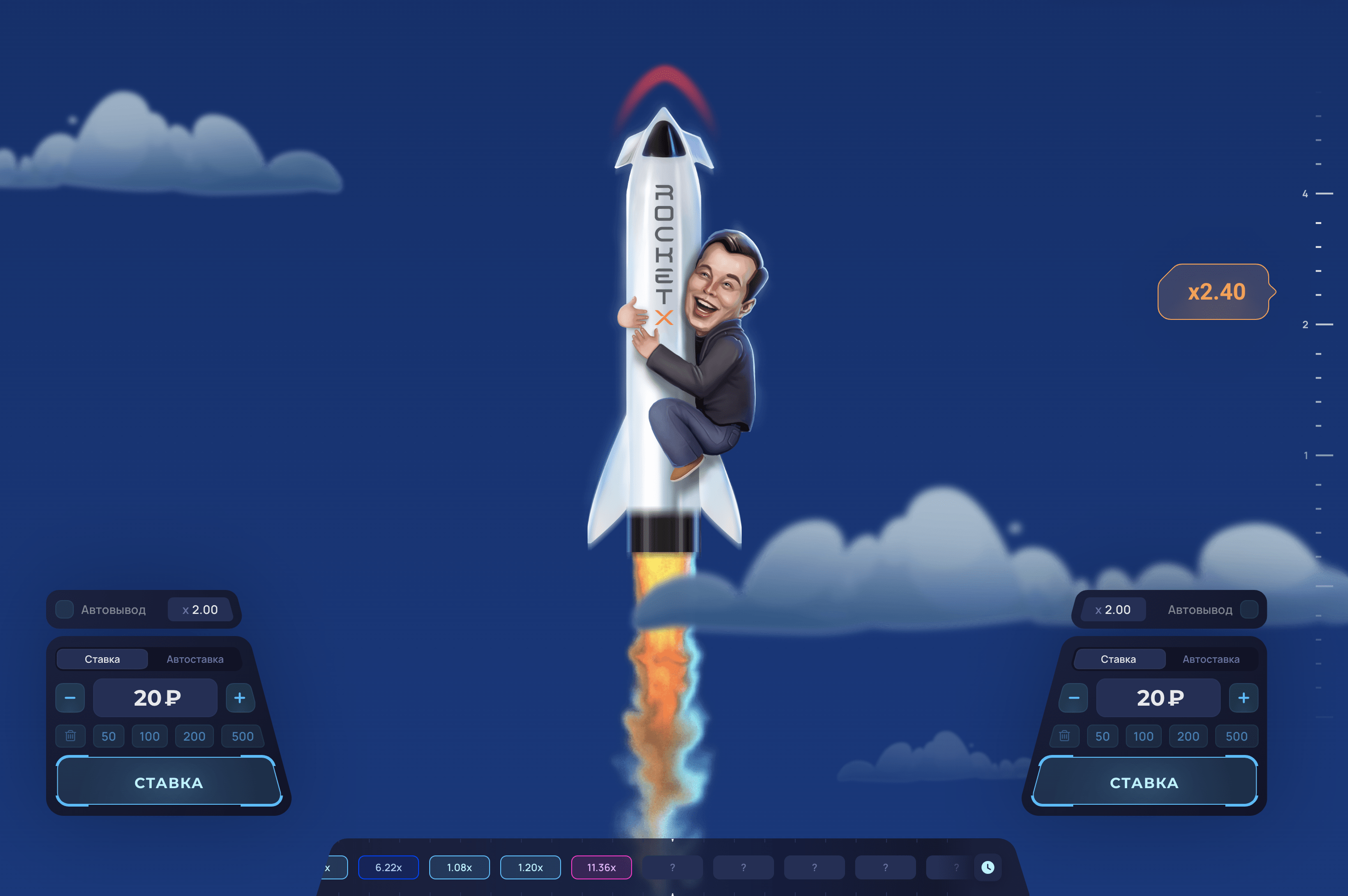 Rocket X – сіздің сәттілік пен стратегиялық ойлауды сынау арқылы нақты ақша ұтып алу мүмкіндігіне ие болатын тәуелді онлайн ойыны. Мұнда сіз ойын ережелері туралы барлық қажетті ақпаратты таба аласыз, стратегия мен тактика бойынша кеңес аласыз, сіз ойынның демо-нұсқасын сынап көре аласыз, тіпті табысқа жету мүмкіндігіңізді арттыру үшін біздің бірегей құрал «Сәуегей» құралын пайдалана аласыз. Бүгін тіркеліңіз және Rocket X-пен қызықты шытырман оқиғаңызды бастаңыз!